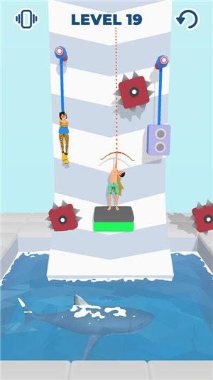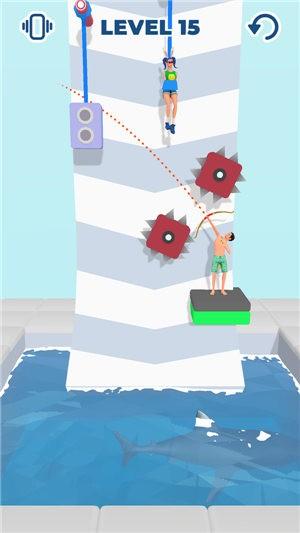 1.根据水中鲨鱼游来游去的情况,找出规律,把握其中的空隙,快速精准的射中绳索,将小姐姐救下!