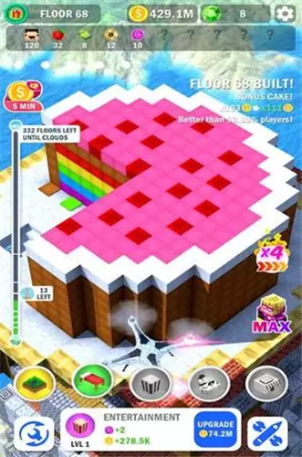 2、放置建筑游戏的目的是堆叠方块、涉足建造业并打造世上最高的摩天大楼!