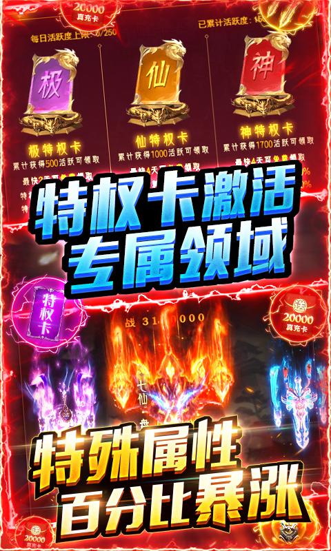 6.极、仙、神、特权卡活跃全免费送,激活后开启专属领域,活跃免费升级领域