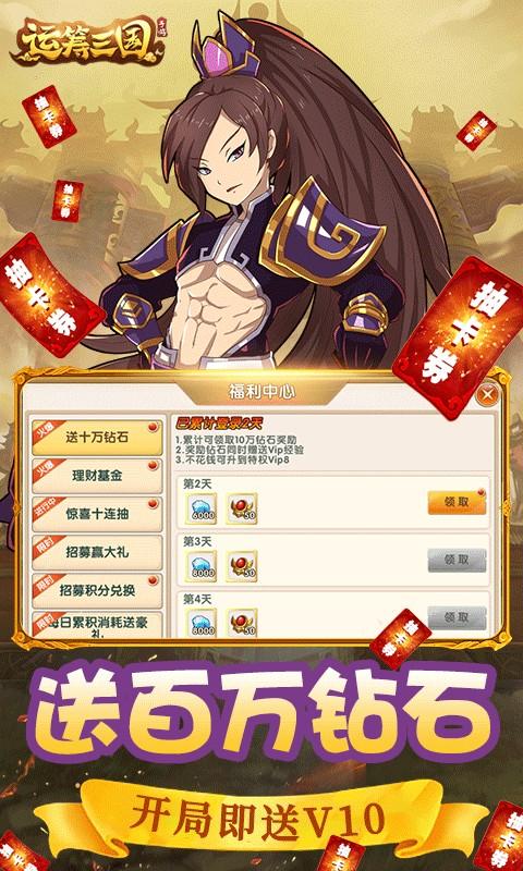 3、运筹三国是由九游渠道地阿里运营的本,是一款非常好玩的三国题材战棋策略手游,玩家在运筹三国中需要不断的强化升级武将,提升自己队伍的战力,多样化的策略玩法,海量的关卡挑战,喜欢的小伙伴一定不要错过哦