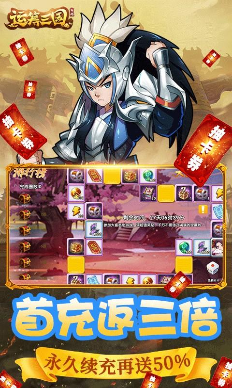 4、运筹三国是一款三国战棋游戏,玩家将进入三国烽火乱世,带领一众英雄好汉征战四方,争霸天下!Q萌可爱的三国武将让玩家爱不释手,在传统策略rpg手游基础上创新的加入了moba手游以及竞技游戏内容要素