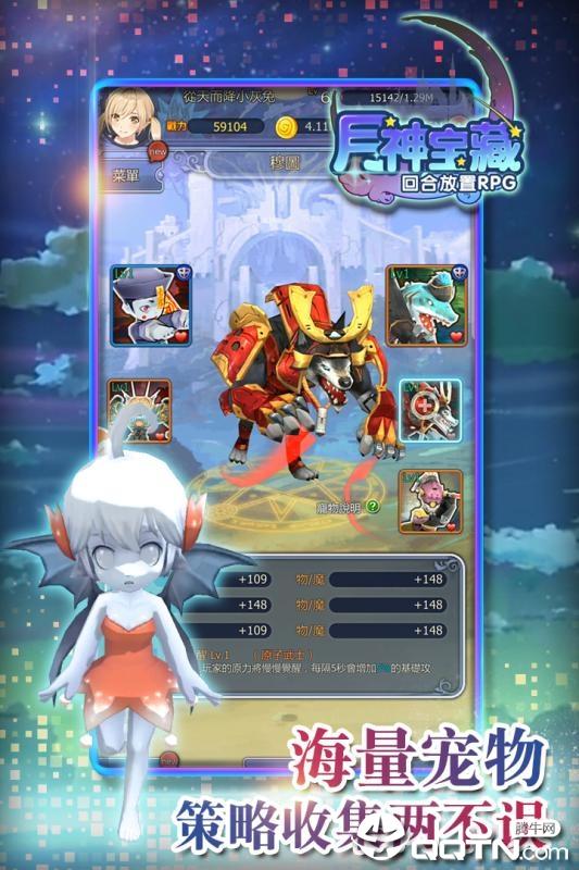 3、月神宝藏,一款画风Q萌的放置类角色扮演手游。游戏有着各种精彩的Q萌角色任你收集,在这里玩家通过在各种不同的关卡种获取海量奖励来养成自己的角色,非常精彩