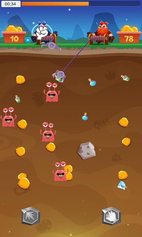 开心挖矿是一款极具挑战性的休闲益智手机游戏,在开心挖矿中,玩家将会变成一个小小的矿工,在充满黄金和宝藏的矿洞工作,每天的任务就是控制能够抓取黄金的钩子,精准的将地下的宝藏抓出来。看似简单的操作却会玩疯你,你能在规定的时间内挖出最多的黄金,成为开心挖矿中最厉害的矿工呢?还有超级多惊喜的玩法等待你的挑战哦!