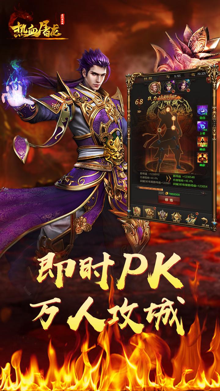 热血屠龙手游官网下载是一款热血的传奇类手游,这款游戏非常火爆,人气也非常高。这款游戏还原了经典的游戏玩法,你可以在这里实时的进行pk。游戏拥有着极高的游戏爆率,玩法非常的自由。