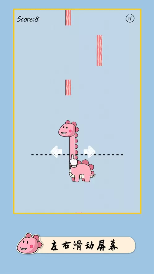像个小恐龙是一款给可爱的小恐龙换装益智休闲类游戏,在这个游戏中玩家要把小恐龙打扮的漂漂亮亮的。非常有趣。游戏流畅的动画,玩法和操作也是相当的简单,你只需要控制屏幕上的恐龙,吃掉从天而降的食物即可,恐龙的脖子就会不断增长,非常的魔性搞笑,而且背景音乐和音效都非常的有意思!
