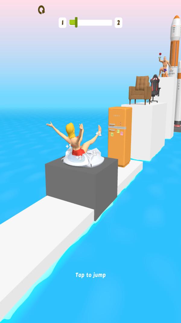 3、点击即可让小姐姐跳跃和挤压物体! 非常魔性的解压游戏!
