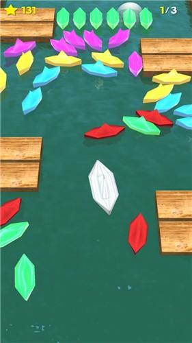 1,这个游戏的玩法是把我们控制的这个纸船推到终点。但是我们在推塔的路上会有一些其他方块阻拦。