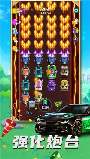3、欢快的竞技节奏得靠玩家掌握,你只需要简单的合成升级战车就可以体验刺.激的塔防战斗了。