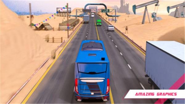 沙漠高速大巴游玩十分丰富,超清的游戏画质,真实模拟的3D游戏场景,玩家将驾驶着自己的大巴车,在各个不同的城市之间来回穿梭,十分的有趣。