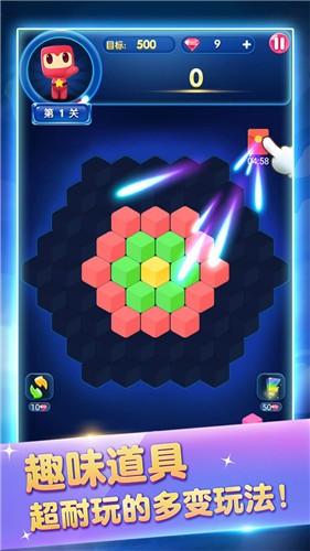 3.一个六角方块六种玩法,更多选择更多挑战,游戏规则简单但趣味无穷,玩转不一样的方块消消乐。