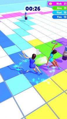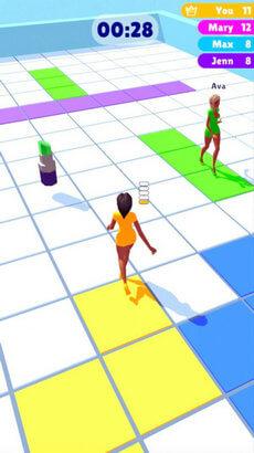 4、游戏是休闲类涂鸦游戏,画面看起来十分的简约清新,玩家将操控自己的角色在场景中不断地走动,走过的地方就会留下颜色,你需要绘制出比对手多很多的方块,操作简单易上手,喜欢的小伙伴快来下载试试吧
