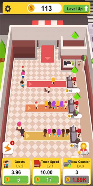 3、我们赚取的金币能够用来晋级店铺,而且还是要招募NPC为我们打工,这样能才干赚取更多的钱。