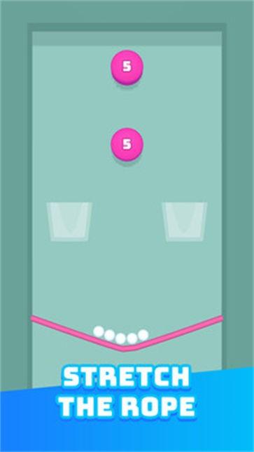 填满杯子需要玩家拉动设立在屏幕中的绳子,利用绳子的弹力将小球弹出,在屏幕中不断触碰带有数字的障碍物复制多个相同的球,填满杯子,就能够顺利通过关卡。