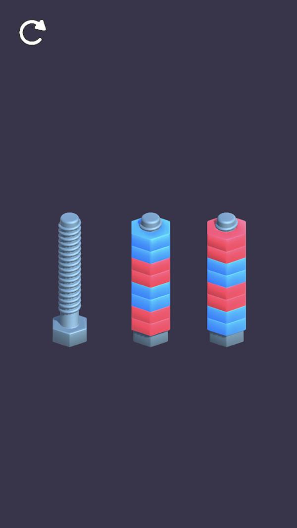 1、根据颜色的不同,将那些颜色一样的螺母移动到同一个螺丝上就过关。