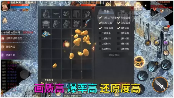 所有的装备都能进行快速的回收,上线后可直接体验到角色的快速升级;