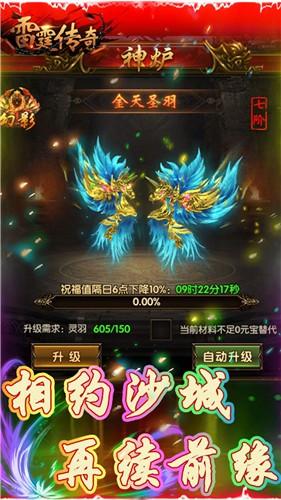 雷霆传奇一款以挂机为主打的传奇游戏,在游戏中你可以分别扮演战、法道三种不同的角色在进行战斗,炫酷的装备和绚丽的翅膀特效回让你有一种身临其境的感觉。同时游戏采用放置式的玩法,典仙侠题材的角色扮演类手游,玩家在这款游戏中更是可以体现英雄在乱世之中,各路豪杰征战沙场的正义之举,和激昂慷慨的兄弟情义,让玩家体验不一样的游戏生活,经典原画呈现,全新题材的复古传奇手游,雷霆传奇游戏升级,开局就是满级vip,无需更多的打怪升级,让玩家可以更好的体验战法道三大角色,雷霆传奇手游还能自由交易极品装备。