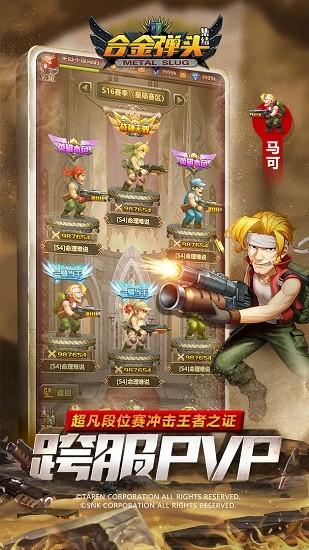 合金弹头集结手游是由官方正版授权的,经典的还原街机中的经典玩法的同时还增加了创新的卡牌养成玩法以及挂机放置的全新玩法。游戏拥有许多的关卡冒险还原街机的乐趣,游戏内和全球的玩家可以同台竞技,更有拳皇的角色加入,这个联动玩起来实在是太酷。