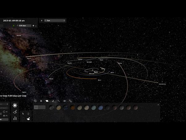 游戏玩法类似物理沙盘游戏,但这次模拟的是浩瀚的宇宙。游戏为玩家提供一个太阳系模型,在那里可以看到恒星、行星、卫星的运作方式,此外,玩家也可以自由创造星球、星系等,来观察各种星体运动产生的影响,或是体验陨石撞击地球的效果等。