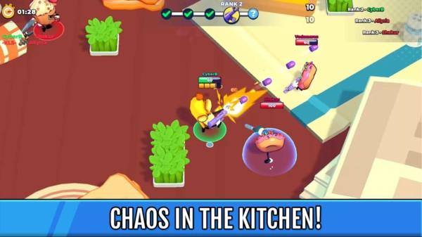 食物大战3D是一款有趣的休闲竞技类游戏,美食之间的趣味对决在这里开启,来到这个精美的卡通世界中,选择你的美食加战斗,步入疯狂的食物战争世界,收集游戏中的各种武器,灵活走位,并与你的对手在这展开一场场精彩对决,体验起来超刺激。游戏内容丰富,拥有超高的可玩性,随机上演的多场趣味游戏,展现你的胜利,在一场场游戏大乱斗对决中,赢下更多胜利吧。
