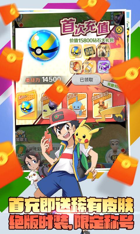 1.上线即送VIP8特权(使用充值卡后可直达VIP11),18888钻石,888万宝可元,1000元充值卡。