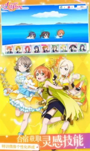 1.陆续解锁更新的偶像角色立绘,不断养成,更加出色的舞台表现,每个角色还有专属的剧情篇章和专属舞台服装