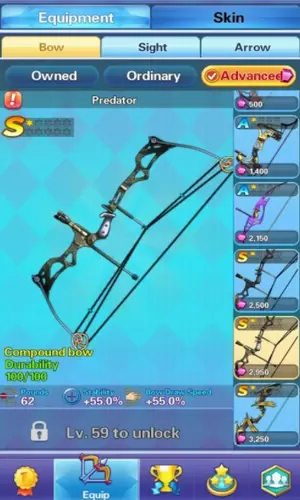 1、参加比赛来获取奖金,购买更棒的弓来射出更加强力的箭;