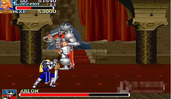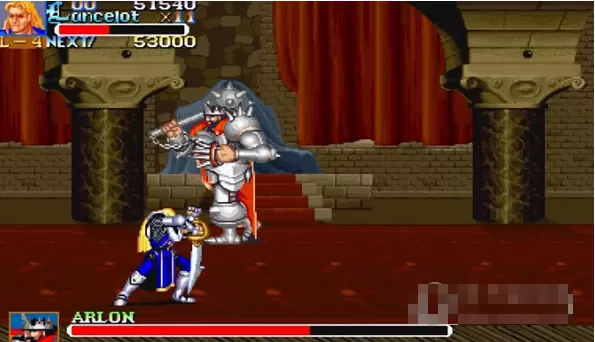 游戏介绍我们曾经为了玩街机可以不用吃饭,为了那种通关的自豪感疯狂的旷课,想想现在都觉得很还是很疯狂的,今天就给大家带来一款通关的游戏——圆桌骑士,大家可以玩玩,找找当年那种感觉。圆桌骑士又名刀剑斧,是一款早期的战斗通关游戏。玩家在游戏中可选择王子(刀)、骑士(剑)及步兵队长(斧)三个角色。控制得熟练,可过数关。防守要是都不会,寸步难行啊!另外游戏过程中,玩家的衣服和武器可以得到升级,更增加了游戏的可玩性,这也是它独特之处。游戏技巧圆桌武士主要是要用好格挡和大刀。格挡是攻击+后 注意是先按攻击不松再按后,大刀是攻击+前,同上。一般打boss就是格挡后大刀 格挡后有几秒的瞬间无敌 然后从容大刀就可以了。另外选择亚瑟,也就是大家说的王子,还可以格挡后松开攻击键按跳,可以大跳;选择拿斧子的 同样的操作,可以后滚。在马上作战时尽量一下一下砍,这样得分高一点。操作介绍键盘 O + K --- 开始游戏键盘 任意一个键 --- 继续游戏键盘 5(6、7、8) --- 投币(注意 5对应1,6对应2,7对应3,8对应4)键盘 1(2、3、4) --- 开始选人(注意 5对应1,6对应2,7对应3,8对应4)键盘方向键左和右 --- 选人键盘左 Ctrl ---确定人选键盘左 Ctrl --- 攻击键盘左 Alt --- 跳键盘方向键 --- 移动(上、下、左、右)键盘左 Ctrl + Alt --- 绝招(杀死敌人的同时会使自己失血)