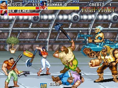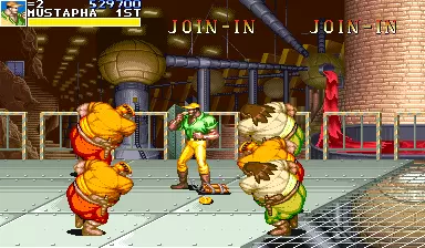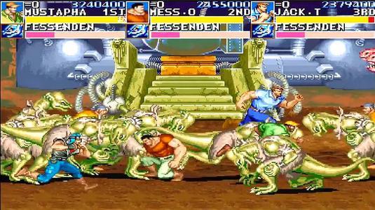 《恐龙快打(Cadillacs and Dinosaurs)》是一款经典的街机游戏。该款游戏有四个角色可选,最多可以支持三个人玩。投一个币可以选择一个角色,每个角色都有两条命。该游戏属于冒险闯关型,总共有八关。每关关底有一个Boss(俗称“大人儿”),打败他就可以进入下一关。