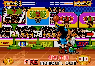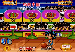 灌篮高手卡通版是1995年Sun Mixing公司出品的小品游戏。标题画面里后面三个家伙是阻拦你投篮的捣蛋货
