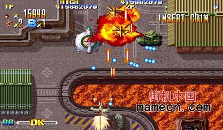 背景设定这款stg是CPS2基板又一热血作品.优秀的作品总会出现续作, 这款也不例外, 2005年出现了本游戏的第3作, 而且运行在TAITO研制的最新基板TYPE-X上了.本作为第一代, 讲述的是GODS创造了一个一块拥有巨大力量的邪恶圣石“MEDALLION”, 造出他的目的就是为了摧毁生灵, 统治世界, 同时神秘军火组织参与其中, 邪恶力量变的越发强大!为了挽救人类面临生灵涂炭的厄运, 我们的战士出现了, 开着他们的战斗机, 勇敢的担当起保卫世界的重任。4名主角(二男二女)中每个人的战机性能都不一样, 个人感觉战斗状态最折中的战斗机当属ISHA的PORCHKA, 火力集中而且附加跟踪导弹作为侧炮, 很适合初手使用.本作的系统和操作手感, 感人感觉制作是一流的水准。说说最后的Boss, 把肆虐的弹幕设计发挥到了极至, 一层又一层的打, 感觉一定程度上借鉴了彩京Boss的风格, 泰山压顶似的弹幕让我时刻在想这个脆弱的小飞机到底能撑多久, 最后的Boss竟然成了一个多变的大方格, 这正是彩京的穷尽stg风格, 他们的Boss飞机搞腻了, 卡通宠物也设计玩尽, 咱也不费脑子了, 干脆直接玩最原始的几何体了。游戏的蓄力系统, 一旦气满, 可以暂时呈现无敌状态, 而且那些子弹全变成了金灿灿的金盾.所以一般在被子弹逼在死角时运用这招会死里逃生, 此招若能熟练掌握保证无敌驰骋纵横每一关.只是我们往往习惯以往stg系统, 只知道一味的躲避, 这个必须克服, 并即使适应新系统.还有就是大团弹幕把你逼入死角时你一紧张, 那时侯才蓄力(蓄力需要时间)已经晚了, 所以时机一定要掌握准, 还要注意蓄力攻击系统要甚用, 用了一次恢复的满力时间其实并不算短, 何况战斗中身边时刻交织着大团横飞的弹幕, 一旦随便用了后如果子弹到身边了, 你还不到满力状态, 自己认栽吧。 [1]操作指南经典街机《雷鸟之翼》登陆android平台了,该游戏支持全屏,横竖屏和虚拟键盘,可以在进入游戏后通过菜logo单键来定义,支持该款街机所有的出招和特技。