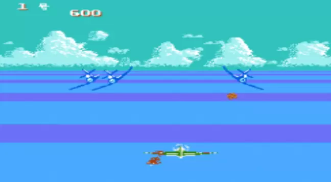 空中:有两种敌人,一种是小型敌机,跟它们相撞倒是相安无事,但到了游戏后期,这些小型敌机到了近距离(形状显现为较清晰的“立”字形以后)就会发射子弹,被子弹击中就会缓缓下降并坠入大海;第二种是远处出现的一种红色巨型战斗机,这种战斗机能力强大,而且不时发射着威力更大的小圆点子弹(会爆炸,攻击范围大一些),摧毁这种战斗机需要将其四个螺旋桨全部击中。