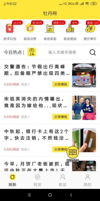牡丹网APP是随手旗下平台,于2020年9月26日全新发布,文章单价0.8元至1.2元,上分很快,而且支持安卓手机和苹果手机,文章的内容也新颖,好文章分享到微信,被阅读的次数越多赚的越多,各种搞笑内容等你来挖掘,大家可以试试,赚够10元就能微信取现。