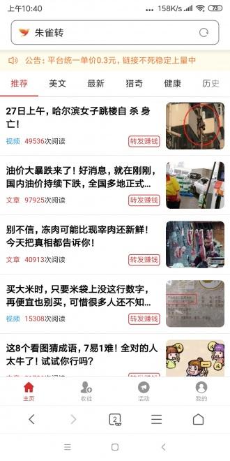 朱雀赚app是最新上线的转发文章赚钱平台,用户可以通过朱雀赚...