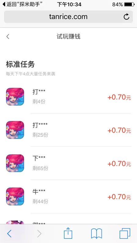 探米APP -一款苹果兼职赚钱平台, 做你最好的赚钱伙伴,注册送1元,任务多,玩法多,10元起提现稳定靠谱。试玩应用3分钟奖金即时到账,通过做任务,可获得高额的现金奖励,领取任务列表中的任意任务,点击开始任务进入,按要求完成返回探米提交任务即可获得奖励,躺着就把钱给赚了呦!