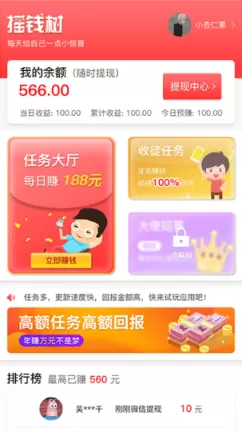 每个任务奖励您1-2元。(任务多多,做的越多奖励越多) 邀请好友,带着好友一起赚,不仅您的朋友可以赚钱,您还能每日最高获得10元的奖励。(邀请好友越多您获得奖励越多) 我们支持24小时提现,只要您赚够10元(最低提现额度10元,上不封顶)就能提现。100%打款。