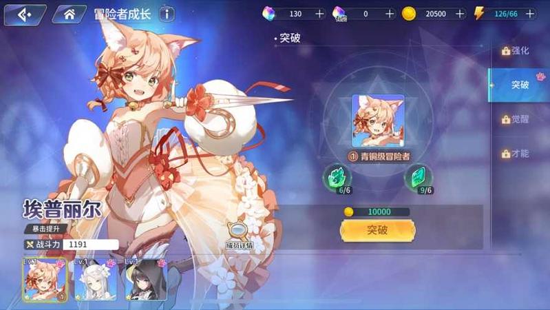 商店:前期金币不要随便消耗,主要用来买突破材料(省体力),每天的高级凭证一定要买,角色升星用。