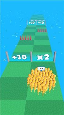 快跑酷跑跑这款游戏的玩法机制十分有意思,在跑道上有着两种通道选择,根据大门上的数字来决定增加还是减少人群数量,带领你的一大群好兄弟,一起展开竞速PK,快乐闯关!