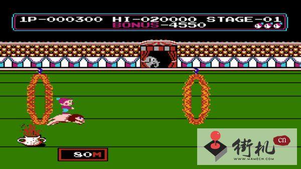 跳火圈:游戏的第一关没什么难度,要注意把握住跳跃尺度,尤其是火圈和下面的火重叠起来才可以跳跃,控制一下距离即可。