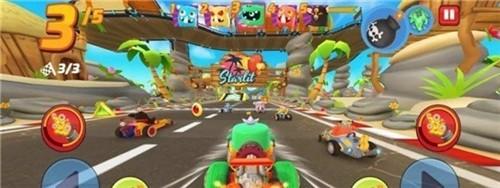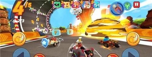 1、卡通的游戏画面下进行各种的赛车竞技都很是精彩的,也是丰富的。
