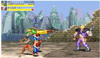 这款游戏很不可思议的是:敌人被攻击后在血条量相应变化的判定上CAPCOM做的相当细腻。攻击的力度上和攻击受力面的差异严格地引起血条量相应的取舍。面对不同的距离,黄帽跑踹的招数打在敌兵上,敌兵的耗血量是根本不同的。尤其是最后的BOSS的第2个形态,更是将血量判定的效果发挥到极致!如抓住后黄帽一个下上拳倒勾腿,血条效果你猜怎么样,不是机械的相应均等地减少,而是慢慢地断断续续地减少,一截一截不规则的变速减少,从而使血条引起的减少形式看起来似乎相当缜密严格。