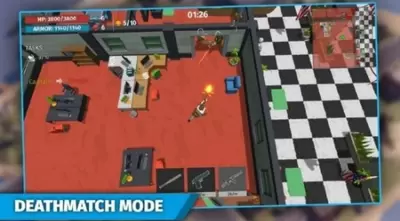 2,超过30种武器,游戏中有很多武器,玩家在俯视视角下,探索各种各样的卡通场景,卡通房间,收集更多的装备,武装到牙齿。