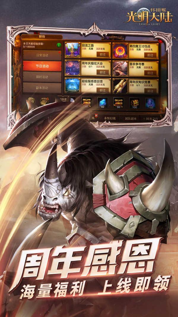 光明大陆手游是一款由国内公司精心打造的3D即时MMORPG魔幻史诗题材类手游,游戏拥有10大职业比如:战士、游侠、秘术师等,另外还有26个团队副本以及8个多维度养成体系提供玩家尽情的玩耍哦,感兴趣的玩家们,欢迎前来下载体验一下吧。