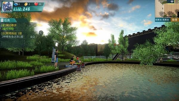 2、游戏拥有有过关、钓大鱼、黑坑钓鱼钓鱼场、竞技比赛这些可以体验;