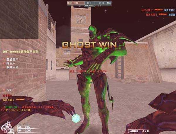 人类在最后3个时可以按E键变为幽灵猎手(变为幽灵猎手时只能用近身武器,灼岩双刀尼泊尔),幽灵猎手不可感染,但可以以一刀3000的攻击力攻击生化幽灵,幽灵猎手血为7000,幽灵一抓为