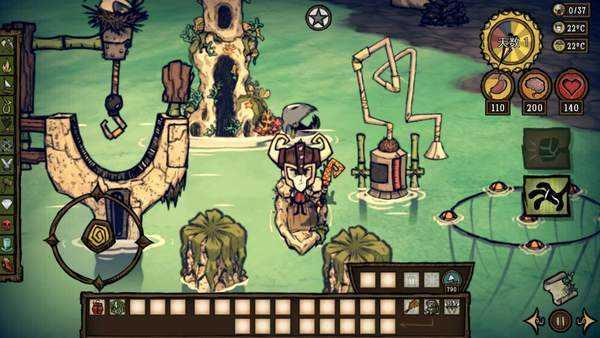 要不然就需要设置多一些发条机器人,要不然就需要中后期进地洞找齿轮。游戏中齿轮的用途是冰箱和灭火器,还要保证储量以防boss拆家。