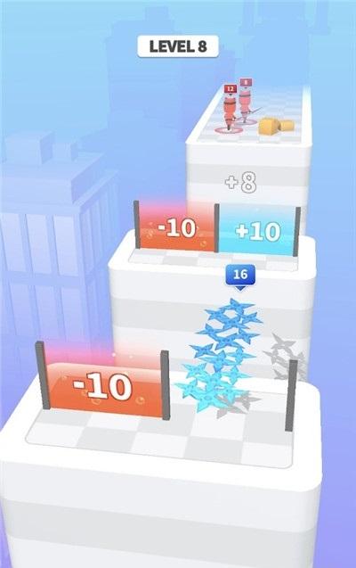 2、控制飞刀通过翻倍区域,躲避危险物避免被消耗,消灭刺客解救人质;