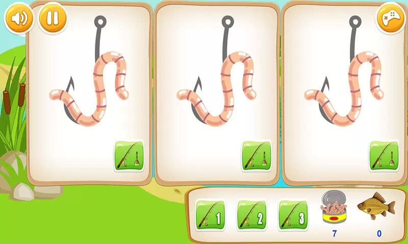 游戏中,我们一共有三把鱼竿,我们需要投放鱼饵,把握时机等鱼儿上钩的时候收杆,一起来试试你可以钓到多大的鱼儿吧!