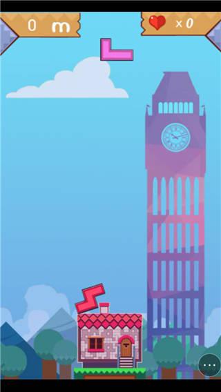 《魔塔学院》一款难度比较大的小游戏,玩家点击方块变换形状落下到房子上,不要让方块掉下去。