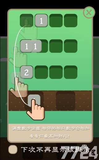 移动数字,相同的数字会结合在一起。