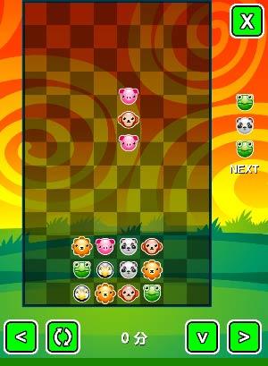 这是一款类似俄罗斯方块的小游戏,把同在一栏的小动物消除掉哦